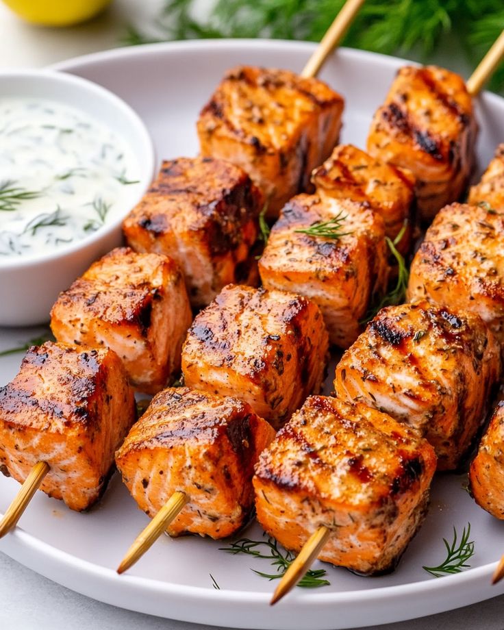 If you’re looking for a healthy, flavorful, and easy-to-make meal, these Grilled Salmon Skewers with Creamy Dill Yogurt Sauce are a must-try! Tender chunks of salmon are grilled to perfection and paired with a cool, herby yogurt sauce that takes the dish to the next level. Perfect for summer BBQs, weeknight dinners, or meal prep. Want recipes like this delivered straight to your inbox? Subscribe now to get the latest culinary creations you’ll love.